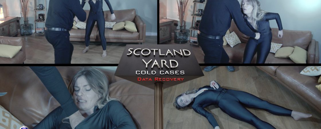 An enemy agent is dispatched to recover a stolen data stick from a UK agent (D’arcy). At first, they fight, but the enemy agent gets the upper hand, and he ups the ante by drawing a knife and burying it into D’arcy’s belly. He then reaches under her unzipped catsuit to recover the data stick. Next, he finishes her off by first driving the blade into her chest. She clutches the hilt of the deadly weapon and slips to the floor where she writhes in pain and finally dies. The killer pulls his knife out of her chest, and drags her body away for disposal.