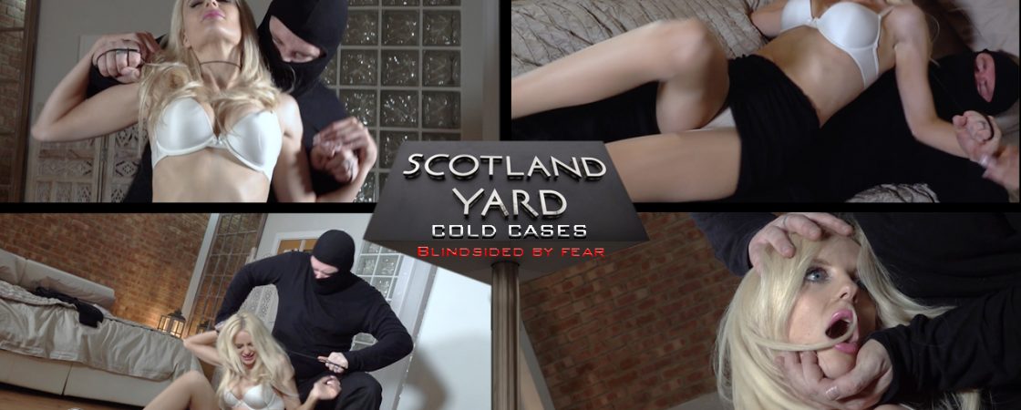 Sienna has just assured her boyfriend that she’s made it home safe, when the UK Strangler attacks from the shadows, knocking her to the bed. They struggle and Sienna ends up lying on top of the Strangler, struggling wildly as he garottes her. She does break away, but he manages to knock her to the floor, incapacitating her with a brutal kick between the legs. As she reacts to the blow, the Strangler gets behind her on the floor and once more whips the garotte around her lovely neck. This time, he maintains the pressure until she weakens from the prolonged strangle. Then, he seizes her by the head and twists viciously, snapping her neck and killing her almost instantly. She drops like a bag of dirt to the floor, lying face down. He rolls her over, check her neck pulse, and after several views of her beautiful corpse, the Strangler lifts her into a cradle carry, admires her, and carries her away.
