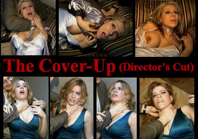 The awesome “The Cover-Up” has finally been upgraded and re-edited! This is a strangle fan’s dream! First Petra is strangled in a negligee with the silk belt from her dressing gown, her desperate struggles giving us a nice view of one of her gorgeous breasts as it pops out of her lace trimmed negligee. If this isn’t enough of a turn on, Jacqueline Velvets returns to their apartment just after the murder dressed in a tight blue evening gown, and the killer has to hand strangle her to death, making sure by crushing her delicate neck in this powerful grip!