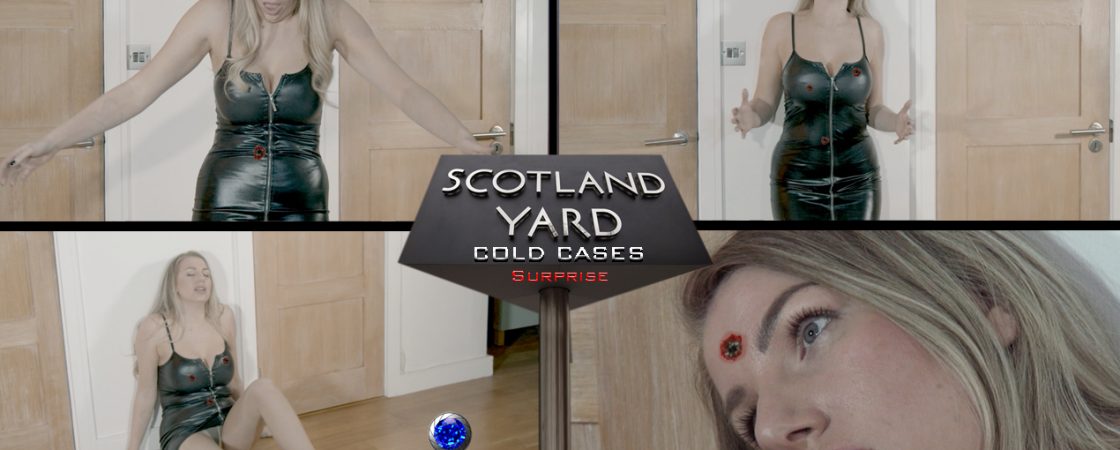 This is not the only surprise though. As Yvonne starts to leave, she is also fired upon, the sniper nailing her in the belly. She is shocked and in pain, but he’s not finished with her. Next, he sinks a bullet in each of her luscious breasts, and she slides down the wall to the floor. She writhes there for a while, then pleads for mercy, but a headshot ends her life, freezing her eyes into a beautiful death stare.