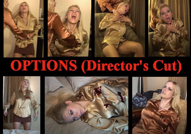 In “Options”, Suzi kills Petra three times and is killed herself. The first two slayings, a brutal stabbing and vicious strangle, are visualizations of how Suzi contemplates killing Petra. Finally, Suzi decides to use an uzi, and blows Petra away with three bursts of machine gun fire, before Suzi is shot herself in the breast 3 times by Victor.