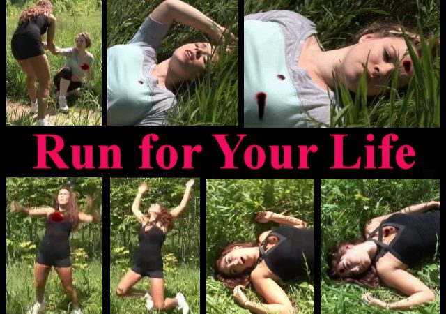 In a rare outdoor scene, Kerie and Lena are running in a deserted, wilderness area when Kerie is downed by a sniper bullet to the leg. As Lena tries to tend to her, Kerie is shot in the breast and dropped to the ground. She tells Lena to run for her life, and she does so, while Kerie goes into her death throes. Lena is then hit with a bullet that throws her into the air before dropping her to the ground. She can see the glint of the sniper’s sights, and pleads for mercy, but he fires again, hitting her full in the chest. Both girls writhe on the ground and die with eyes open in shock. The sniper then makes sure by delivering a final headshot to both of the girls!