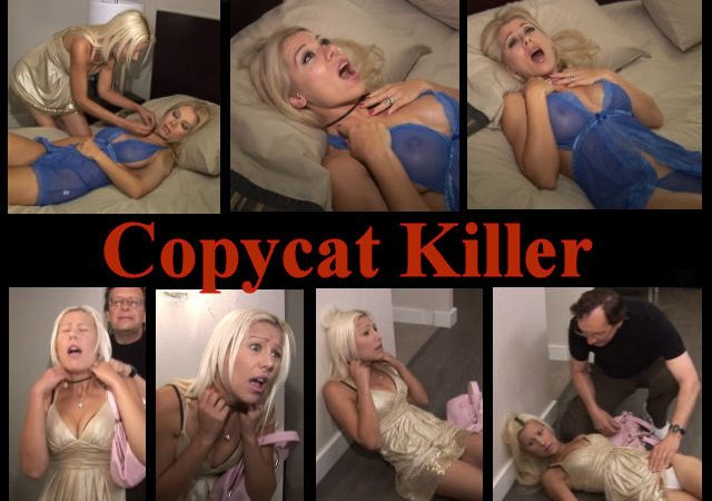 Unfortunately for Jessica, the real Zip Tie Killer is stalking her, and she suffers immediate retribution at his hands as he secures a zip tie around her neck and enjoys her erotic death throes. She staggers about, slides down the wall, and comes to rest seated on the floor where she eventually expires. Then, her killer fondles her body as he explains how he tracked her down and stopped her from stealing his M.O.